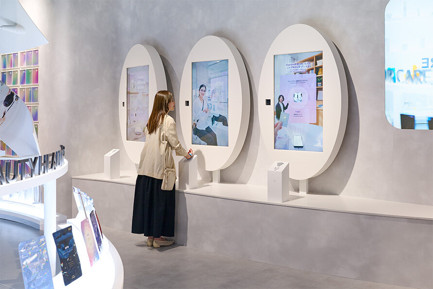 実際に大阪ヘルスケアパビリオンで取得したPHRデータと連動し、あなたの髪・肌・ビューティヘルスケアの状態に応じてパーソナライズされた製品をおすすめする次世代のレコメンド体験を通じて、いろいろな製品の中からあなたと相性の良いアイテムが選ばれる様子を実感していただきました。
