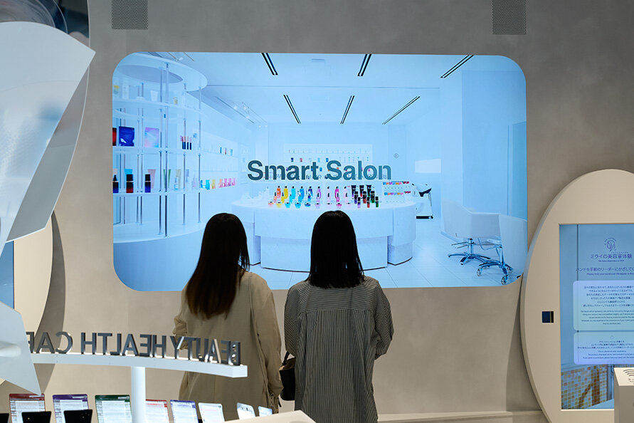 美容室にいるときも、自宅にいるときも、美容師が寄り添い、ヘアケアだけでなくスキンケア・ビューティヘルスケアまでアドバイスを受けられるあなただけのパーソナライズされた美容と健康をまるでその場所にいるかのような感覚で映像体験ができる没入型の体験としてご紹介しました。