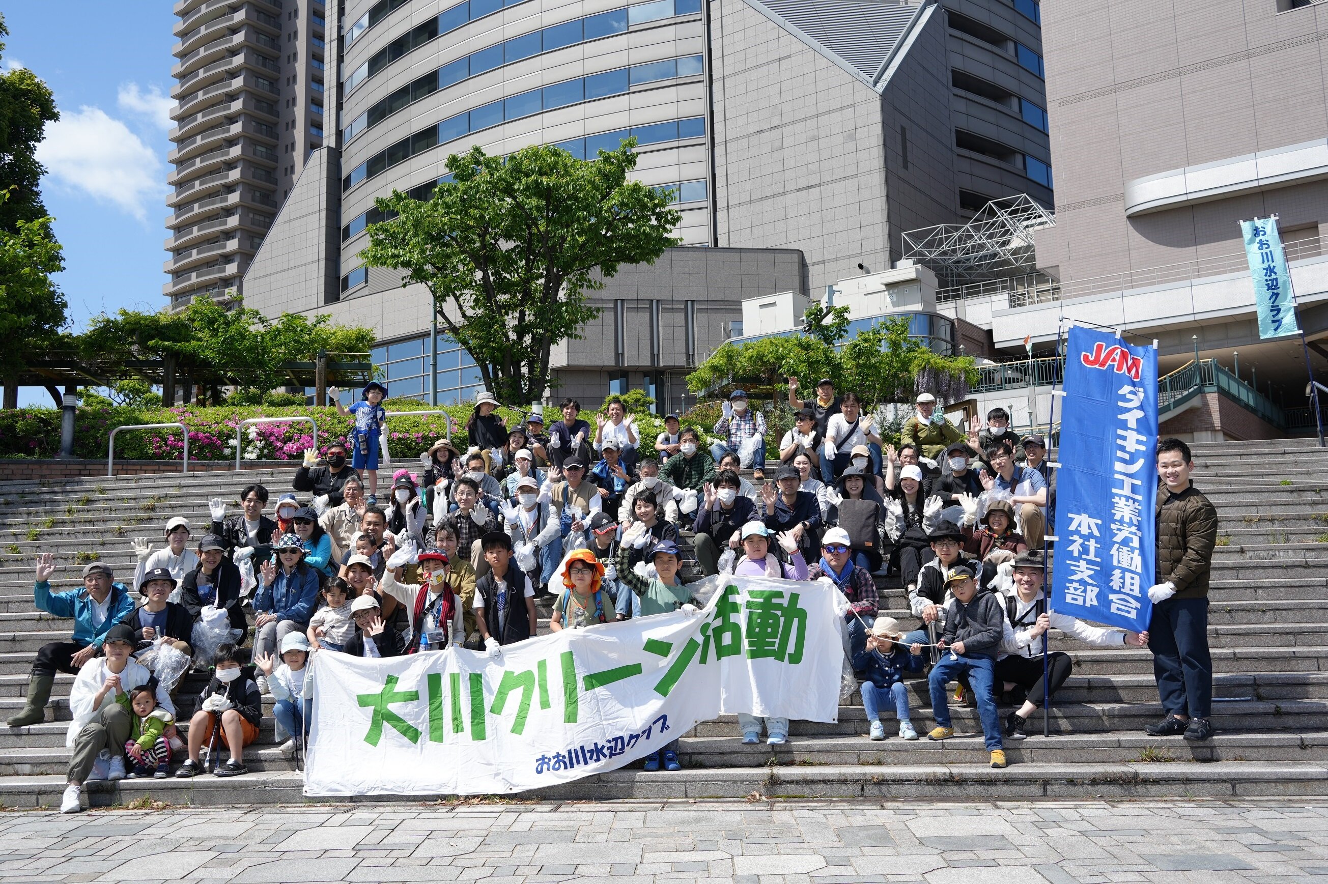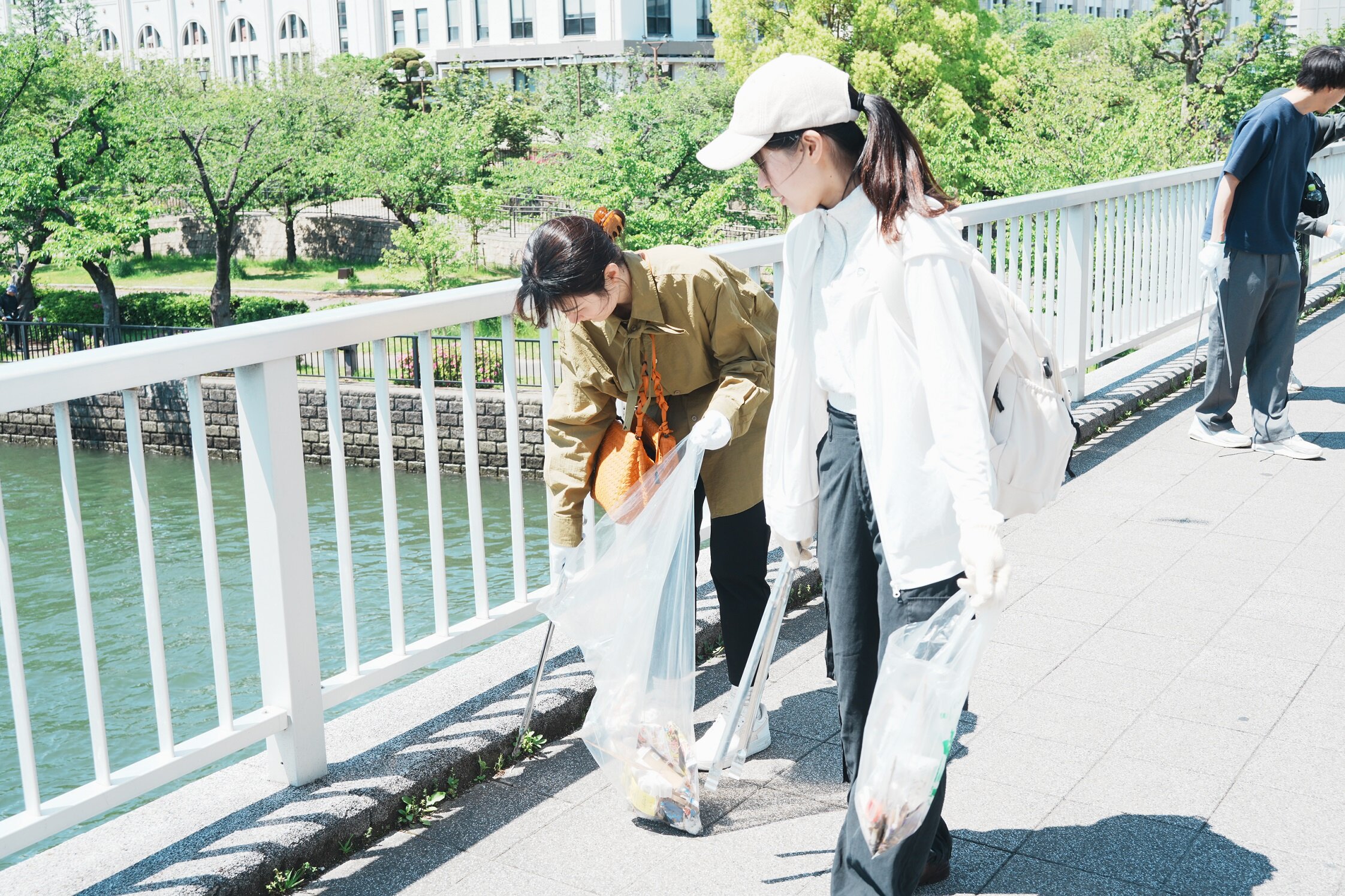 国内基幹研究開発拠点である「中央研究所」(大阪市都島区)が所在する地域の排水は、今福下水処理場を経由して寝屋川から大川に合流しています。2025年、「SDGs開発本部推進プロジェクト」の取り組みの1つとして、研究員たちが中心となって大川周辺のクリーンアップ活動へ参加しました。同プロジェクトでは研究員がサステナビリティの実現へ貢献するために、大川周辺のクリーンアップ活動以外にも、社内勉強会や地域貢献活動などへ積極的に取り組んでいます。