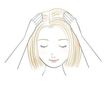 全体になじませた後、中間~毛先のキューティクルを整えるように挟み込んで塗布し、よくなじませます。